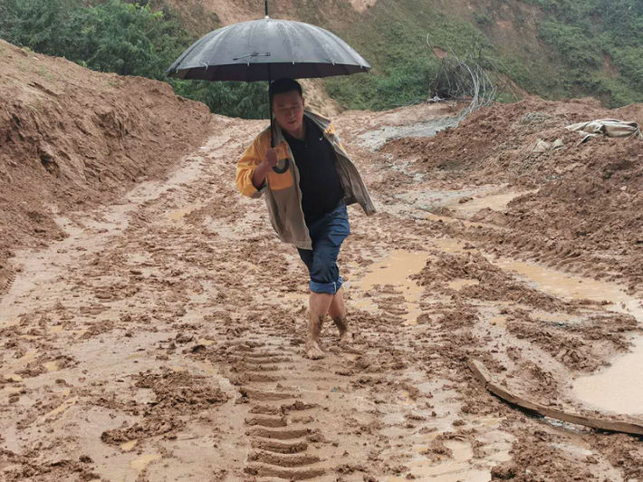 23日,砼泵車正在高樓塬隧道進口頂端為框架梁搶送砼施工,但中途突降大雨,隧道邊坡及施工便道瞬間變得泥濘不堪,部分區(qū)域積水,致使施工人員寸步難行。由于進行框架梁施工的泵車與地面的坡度過大,造成水車無法爬坡送水涮泵,大大增加了現(xiàn)場施工難度。工區(qū)負責人張志和只好脫鞋徒步在冰涼的泥路上艱難前行,為使泵車的泵管不堵塞,他果斷安排灑水車停在隧道進口處,由施工人員用繩索一桶桶往上拎水到隧道頂端進行清涮泵車。他一邊交待施工人員的安全問題,一邊進行現(xiàn)場指揮,自己卻幾次險些滑倒在泥路上。因為他對現(xiàn)場施工情況處理及時,避免了很大安全隱患和經(jīng)濟損失。據(jù)悉,施工人員冒雨提拎了一百多桶水才完成該泵車的清涮工作。該框架梁在不受汛期影響下還需一個月完工。