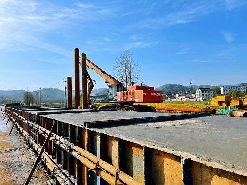3月28日,中鐵十一局池黃鐵路參建工人在位于安徽池州貴池區(qū)境內(nèi)的墩上特大橋128米系桿拱施工作業(yè)現(xiàn)場。