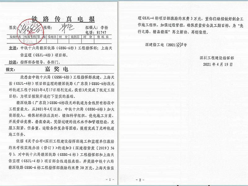 4月17日晚,由中鐵十六局二公司贛深高鐵6標(biāo)二分部承擔(dān)施工的無砟軌道基礎(chǔ)實現(xiàn)圓滿收官,為下一步順利鋪軌施工奠定了堅實基礎(chǔ)。