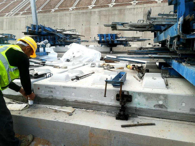 針對底座板所采取的主要措施,包括加強梁面拉毛、清理,嚴(yán)格控制每一根L型筋擰緊力矩,從而實現(xiàn)底座板與梁面牢牢結(jié)合防止離縫。