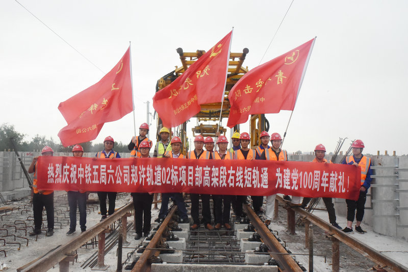 鄭州機(jī)場(chǎng)至許昌市域鐵路工程(鄭州段)線路北端起于港區(qū)北站,南端止于鄭州市界,線路全長(zhǎng)33.43km,共設(shè)車站16座,其中由中鐵五局六公司承建的軌道安裝工程02標(biāo)段線路全長(zhǎng)23.263km,高架段長(zhǎng)5km。自2021年3月進(jìn)入高架段鋪軌施工階段以來(lái),為加快高架段施工進(jìn)度,全面掀起復(fù)工復(fù)產(chǎn)的大干高潮,中鐵五局六公司鄭許軌道2標(biāo)項(xiàng)目部共開(kāi)設(shè)了2個(gè)鋪軌作業(yè)面,作業(yè)人員達(dá)80余人,管理和技術(shù)人員配備齊全;與此同時(shí),項(xiàng)目部積極組織人員去其他標(biāo)段學(xué)習(xí)高架段施工經(jīng)驗(yàn),制定高架段施工質(zhì)量控制措施,解決道床裂紋等高架段整體道床施工常見(jiàn)問(wèn)題,確保工程質(zhì)量。通過(guò)管理措施與技術(shù)措施雙管齊下,項(xiàng)目部于5月23日快速、優(yōu)質(zhì)實(shí)現(xiàn)了高架段右線短軌通,為接下來(lái)實(shí)現(xiàn)高架段雙線軌通奠定了堅(jiān)實(shí)基礎(chǔ)。