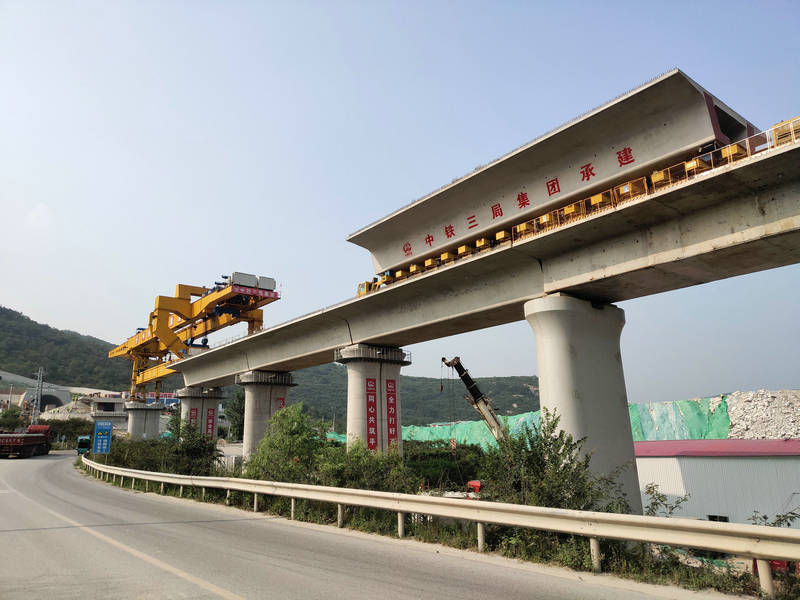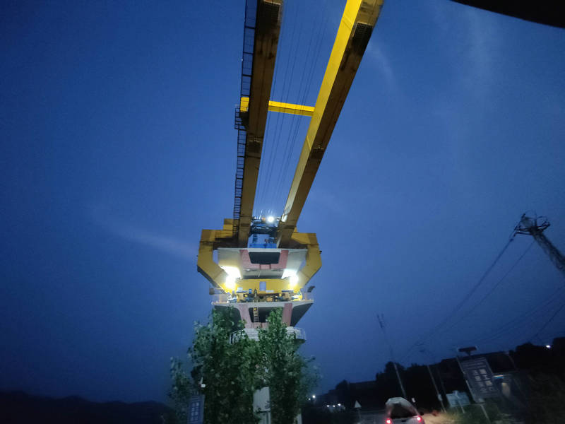 跨公路架橋歷來為鐵路安全施工的重中之重。為確保此次跨317省道架梁任務圓滿完成,項目部高度重視、積極準備,提前進行實地考察,多次研究討論,確定跨公路架梁時安全防護專項方案;項目領導高度重視,親臨現(xiàn)場盯控,結合實際情況,確定在車流量較少的晚8點以后開始架設,并采取在架梁兩側樹立警示牌、安排多名防護人員對往來車輛進行疏導等安全防護措施;現(xiàn)場作業(yè)人員認真負責,銜接無暇,在安全無誤完成各項工序的同時確保了變跨過孔、架梁時橋下無人通行,確保跨省道架設任務圓滿完成。