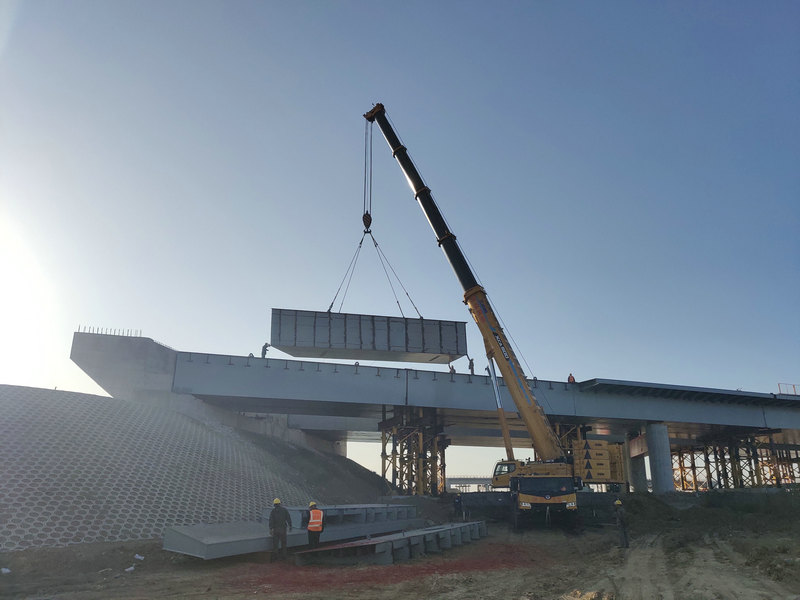 永興互通鋼箱梁為上羅高速全線鋼箱梁第一個開始架設(shè)、第一個全部架設(shè)完成,且第一個打造了具有初步形象的樞紐互通。鋼箱梁的全部吊裝完成,意味著上羅高速6標(biāo)在“百日大干”勞動競賽階段完成了階段性節(jié)點(diǎn)目標(biāo),為上羅高速的建成通車奠定了堅實(shí)的基礎(chǔ)。
