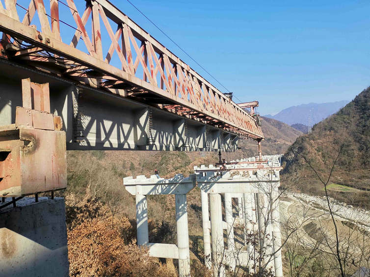 據(jù)悉,高橋寺南河大橋共計(jì)23跨、200片梁(其中40米T梁190片、30米T型梁10片),80根墩柱(其中博壁空心墩柱8根、圓柱橔柱72根),目前已經(jīng)完成40米T梁76片,30米T梁2片,墩柱施工已全部完成。主橋連續(xù)剛構(gòu)采用掛籃懸臂澆筑法施工,全橋共64個懸澆段,懸澆段節(jié)段長度為5×300+3×350cm,邊跨現(xiàn)澆段長度為2.42m,采用托架法施工,邊跨合龍段長度為1.5m,中跨合龍段長度2m,合龍段采用掛籃施工。目前連續(xù)剛構(gòu)掛籃懸臂澆筑已完成懸澆段62個,預(yù)計(jì)春節(jié)年后全部完成貫通。