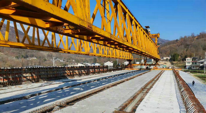 廣平高速公路TJ13合同段項目位于綿陽市平武縣境內(nèi),全長7.62公里,含大橋三座。此次順利貫通的蘇家壩大橋全長348米,架設(shè)T梁共計100榀(30m梁60榀,40m梁40榀),本次架設(shè)的最后一榀梁長40米,重125噸,采用專業(yè)架橋機(jī)架設(shè)。由于橋梁墩柱高,一定程度上增加了施工難度和安全風(fēng)險,在T梁架設(shè)過程中,項目安全、技術(shù)、質(zhì)量管理人員全程監(jiān)督控制,切實(shí)保障架設(shè)作業(yè)按照施工方案順利進(jìn)行,實(shí)現(xiàn)了該大橋T梁安全架設(shè)無事故。