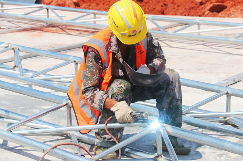 “看著廠房在自己的手中一點點從無到有搭建起來,與這種成就感比起來,曬一點簡直不值一提!”上午10點,烈日炎炎下的施工現(xiàn)場沒有任何遮擋,火辣辣的陽光高直接照射在高空作業(yè)人員張工身上,談及高溫作業(yè),他更相信堅守的力量。在梨東項目,像張工一樣的人還有很多,他們頭頂驕陽,忍受著烈日“烤”驗,堅守崗位,在現(xiàn)場規(guī)定的夏季有限作業(yè)時間內(nèi),用行動擔(dān)起自己的責(zé)任。