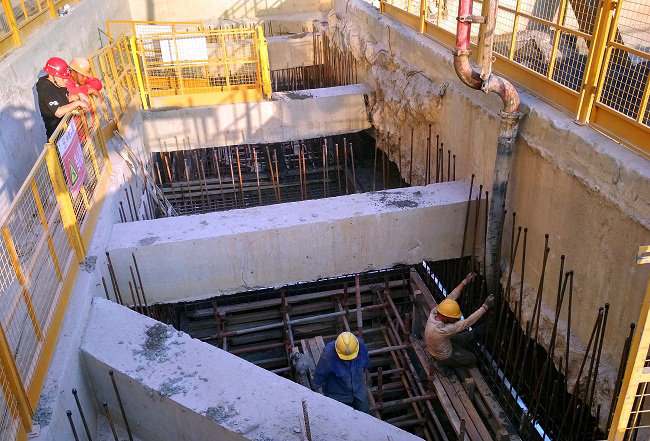 據(jù)悉,施工滄浪新城站結(jié)構(gòu)工程時,項目積極采用新材料、新工藝,其中采用大力神碗扣支架施工為蘇州軌道交通3號線全線首先采用,較普通碗扣支架具有明顯優(yōu)勢,一是支架承載力大,增大了支架承載間距,減少了三分之一的支架用量,節(jié)約了材料;二是縮短了支架搭拆的時間,提高了工效;三是特殊的斜桿剪刀撐和支架節(jié)點的特殊連接結(jié)構(gòu),增強(qiáng)了支架的穩(wěn)定性,避免了安全隱患;四是熱鍍鋅的表面處理方式保證了架體的使用壽命,也符合蘇州市政工程文明施工的高要求。