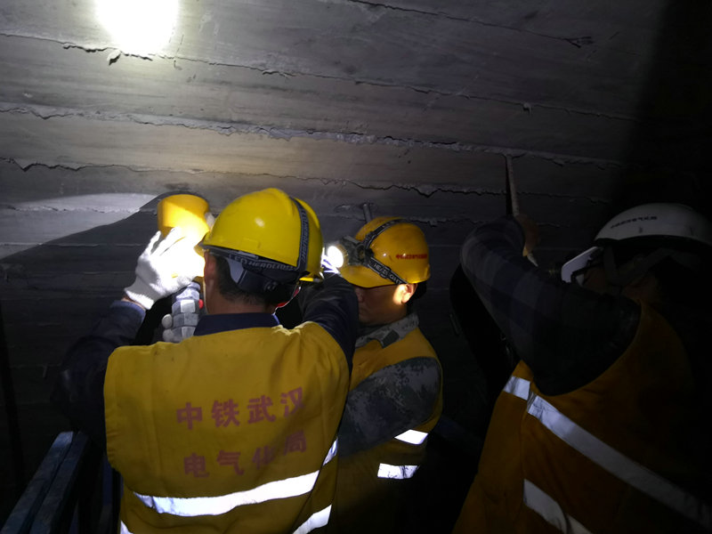 11月4日至今,中鐵武漢電氣化局新建黔張常代建段項(xiàng)目對現(xiàn)場各隧道進(jìn)行了拉拔試驗(yàn),主要檢測隧道內(nèi)接觸網(wǎng)吊柱錨栓的承重量和受力的合理性,檢測工具為拉拔儀。項(xiàng)目總工程師帶領(lǐng)技術(shù)人員會同長沙中大監(jiān)理、懷化供電段、成都供電段相關(guān)人員見證試驗(yàn)。