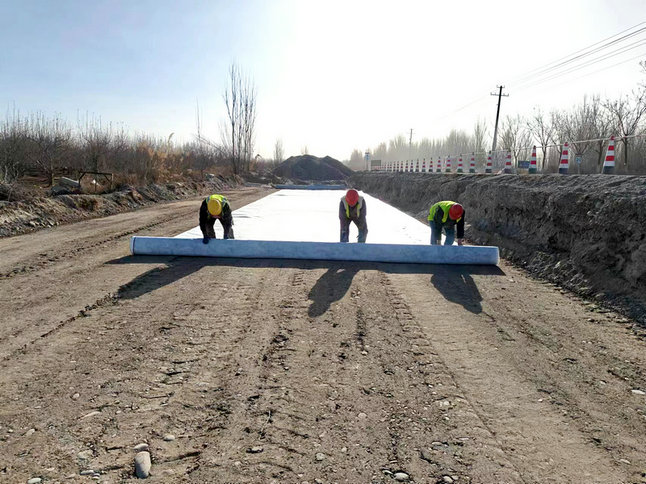 正在閱讀:水電集團市政路橋第三筑路草湖一級路施工項目14+880-13+180路基頂鋪設(shè)土工布