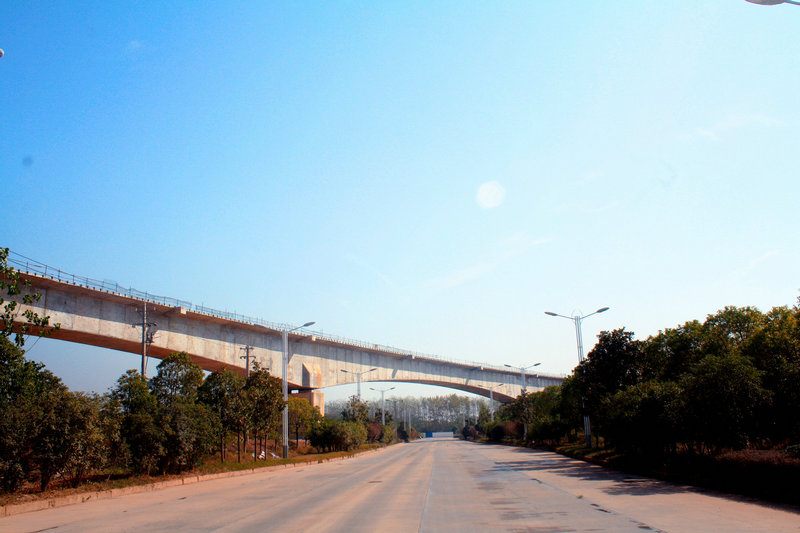 由武漢公司承建的新港鐵路3標(biāo)項(xiàng)目,全長(zhǎng)22.767公里,共有特大橋5座,各種大中小橋17座,其中繞城特大橋穿越陽(yáng)邏城區(qū),上跨武漢繞城高速,沿途交通錯(cuò)綜復(fù)雜,安全管理壓力大。全長(zhǎng)1360米,共計(jì)34墩2臺(tái),連續(xù)梁3跨,最大跨度115米?;A(chǔ)采用鉆孔樁基礎(chǔ);橋墩為雙線圓端形實(shí)心橋墩,橋臺(tái)為矩形空心橋臺(tái)。