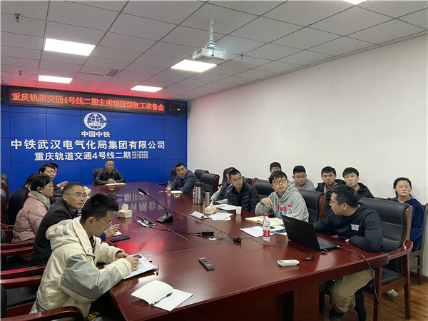 圖:2月22日下午,中鐵武漢電氣化局重慶軌道交通4號線二期主所項目召開年后復(fù)工準(zhǔn)備部署會議。董志剛攝